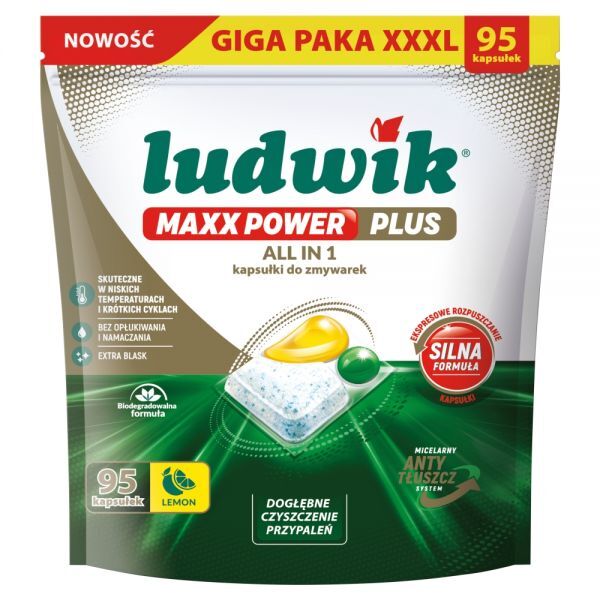 Sposób stosowania: Nie dotykać produktu mokrymi rękami. Włożyć naczynia do zmywarki zgodnie z instrukcją producenta zmywarki. Nie usuwać folii ochronnej z kapsułki. Folia rozpuszcza się całkowicie podczas mycia. Umieścić kapsułkę w suchym dozowniku i zamknąć zmywarkę. Po wyjęciu kapsułki szczelnie zamknąć plastikową torebkę. Ludwik Maxx Power Plus kapsułki do zmywarek działają skutecznie w miękkiej, średnio twardej i twardej wodzie do 17dH/30fH. Polecamy dodatkowe zastosowanie Ludwik płynu nabłyszczającego do zmywarek oraz Ludwik soli ochronnej do zmywarek. Nie stosować do mycia ręcznie malowanej porcelany, kryształów, srebra, złota, miedzi, aluminium, wyrobów z drewna.