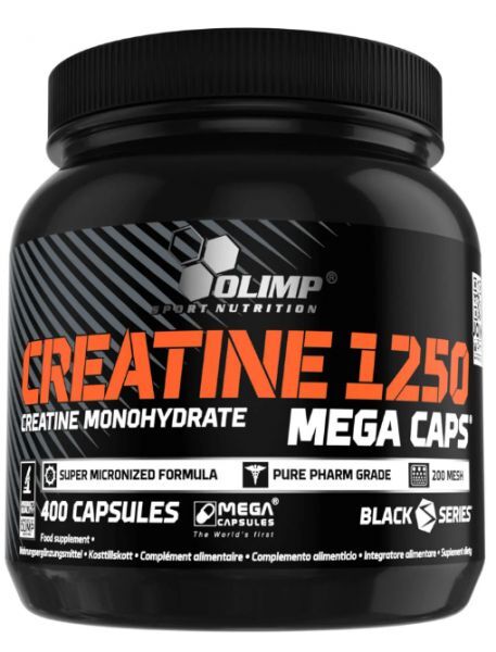 Suplement diety Olimp Creatine 1250 Mega Caps®to niezwykle popularny wśród zawodowych sportowców i amatorów dyscyplin siłowych oraz siłowo-wytrzymałościowych mikronizowany monohydrat kreatyny. Suplement diety został przygotowany w innowacyjnej technologii pojemnych kapsułek Mega Caps®, dzięki czemu zawiera optymalną porcję wysokiej jakości kreatyny. Specjaliści z firmy farmaceutycznej Olimp Laboratories zadbali, aby produkt odznaczał się wysoką jakością i czystością mikrobiologiczną, co umożliwia jego bezpieczne stosowanie oraz efektywne działanie dla organizmu ćwiczącego1.