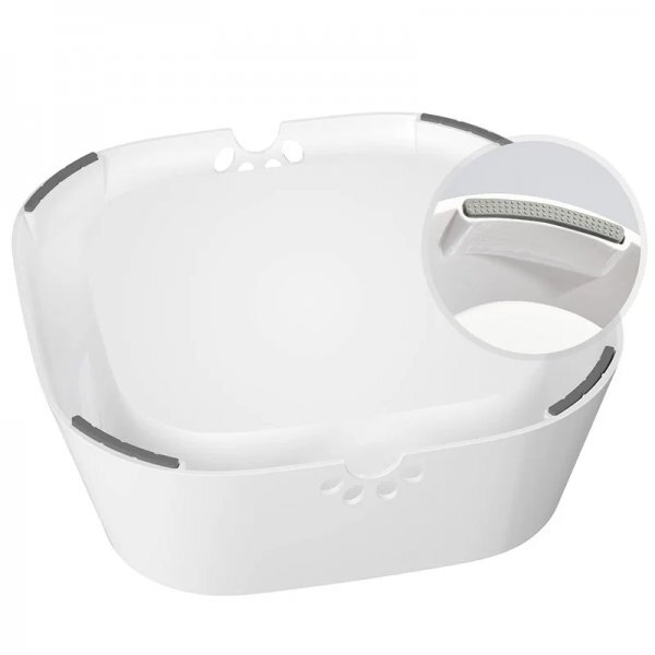 Miska wyposażona jest w antypoślizgową podstawę z gumowymi podkładkami, które zapobiegają przesuwaniu się i przypadkowemu przewróceniu.