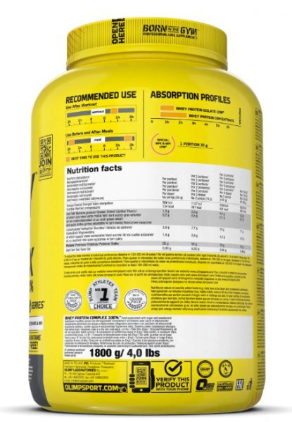 Olimp WHEY PROTEIN COMPLEX 100%. Suplement diety. Wysokobiałkowy koncentrat w proszku. Zawiera substancje słodzące.