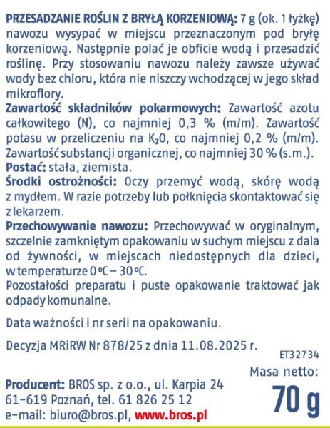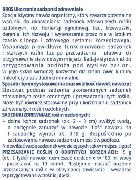 Specjalistyczny nawóz organiczny, który stwarza optymalne warunki do ukorzeniania sadzonek zdrewniałych roślin ozdobnych, np. hortensji ogrodowej, bzu, krzewuszki, derenia, ich rozwoju i wytworzenia przez nie w krótkim czasie silnego i zdrowego systemu korzeniowego. Wspomaga prawidłowe funkcjonowanie sadzonek i starszych roślin tuż po przesadzeniu i ułatwia ich przyjmowanie się w nowym miejscu. Nadaje się również do przygotowania podłoża pod wysiew nasion. W jego skład wchodzą korzystne dla roślin żywe kultury mikroflory oraz składniki mineralne.
