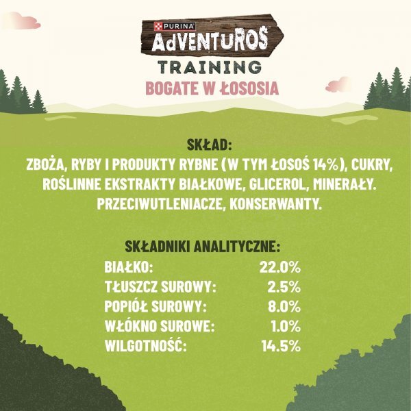 Odkryj smakowite przysmaki niewielkich rozmiarów, które idealnie nadają się jako nagroda podczas spacerów czy treningów, zarówno na dworze, jak i w domu. Purina AdVENTuROS™ Training to doskonały sposób na motywację Twojego psa, dzięki czemu każdy trening staje się przyjemnością. Miękka struktura i przemyślany kształt sprawiają, że przysmaki można łatwo podzielić na dwie części.