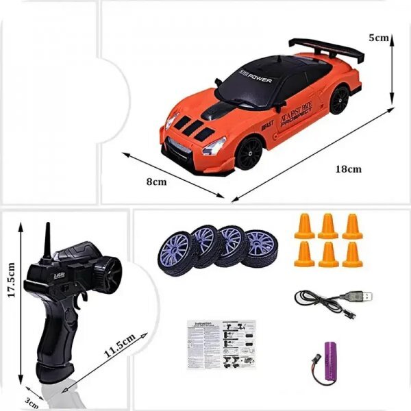 - Pełna kontrola i moc emocji – pilot umożliwia sterowanie we wszystkich kierunkach (przód, tył, lewo, prawo), a 4-napęd sprawia, że auto radzi sobie świetnie podczas driftu i szybkich manewrów.